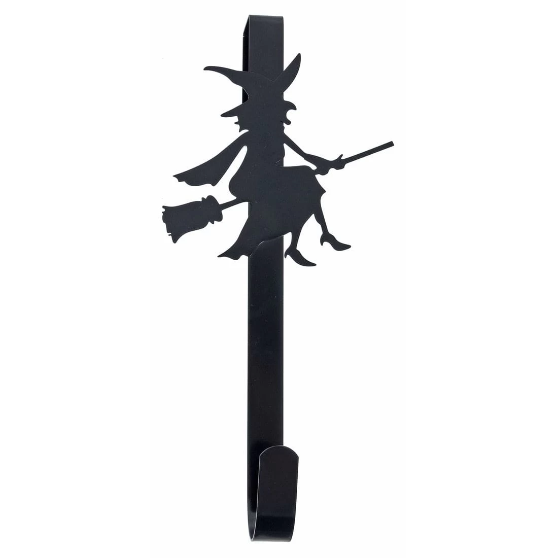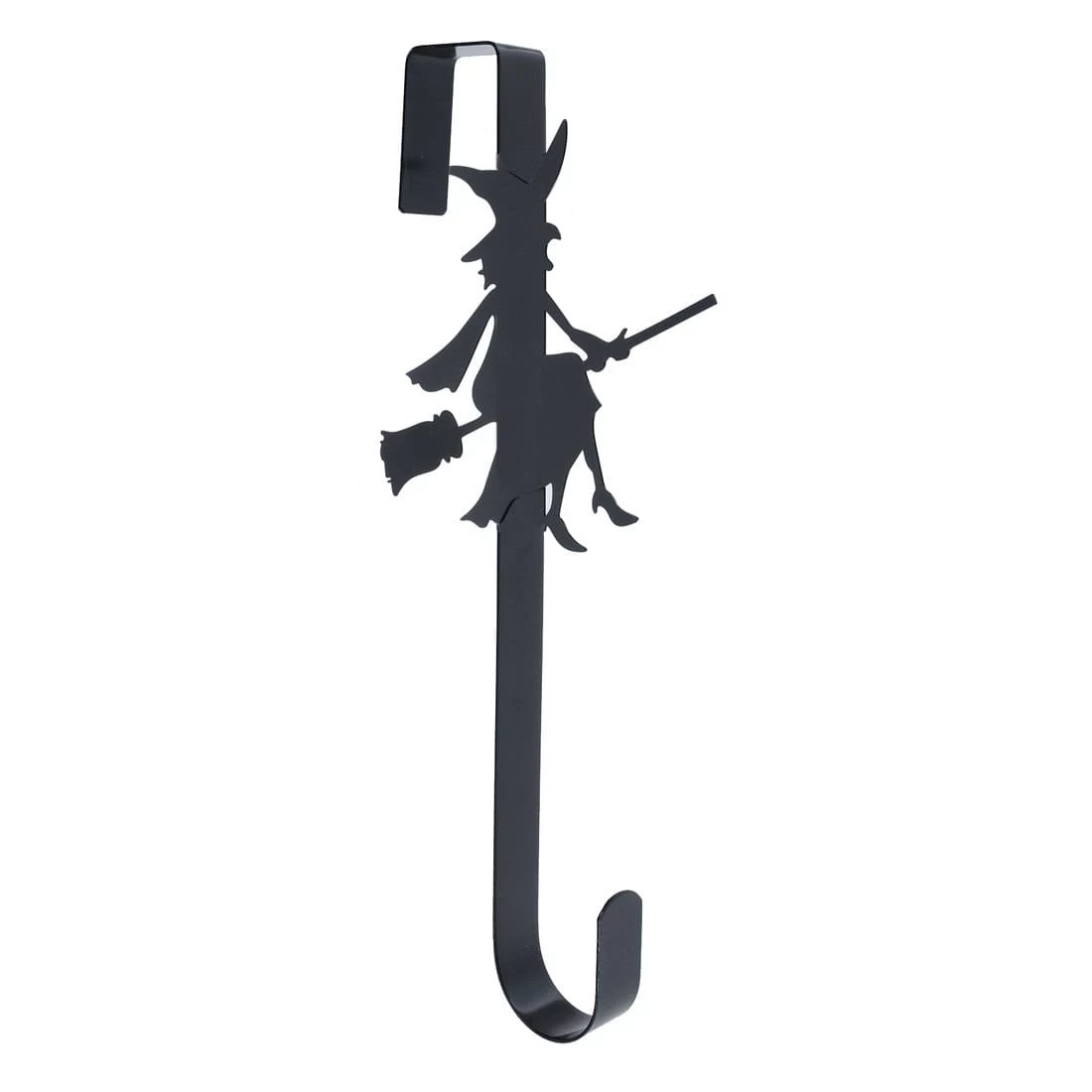 Our witch themed over-door hanger os perfect for displaying one of our Halloween wreaths over the spookiest season of the year! It is made from solid metal with a jet black coating and witch design. Perfect for welcoming trick-or-treaters to your door!