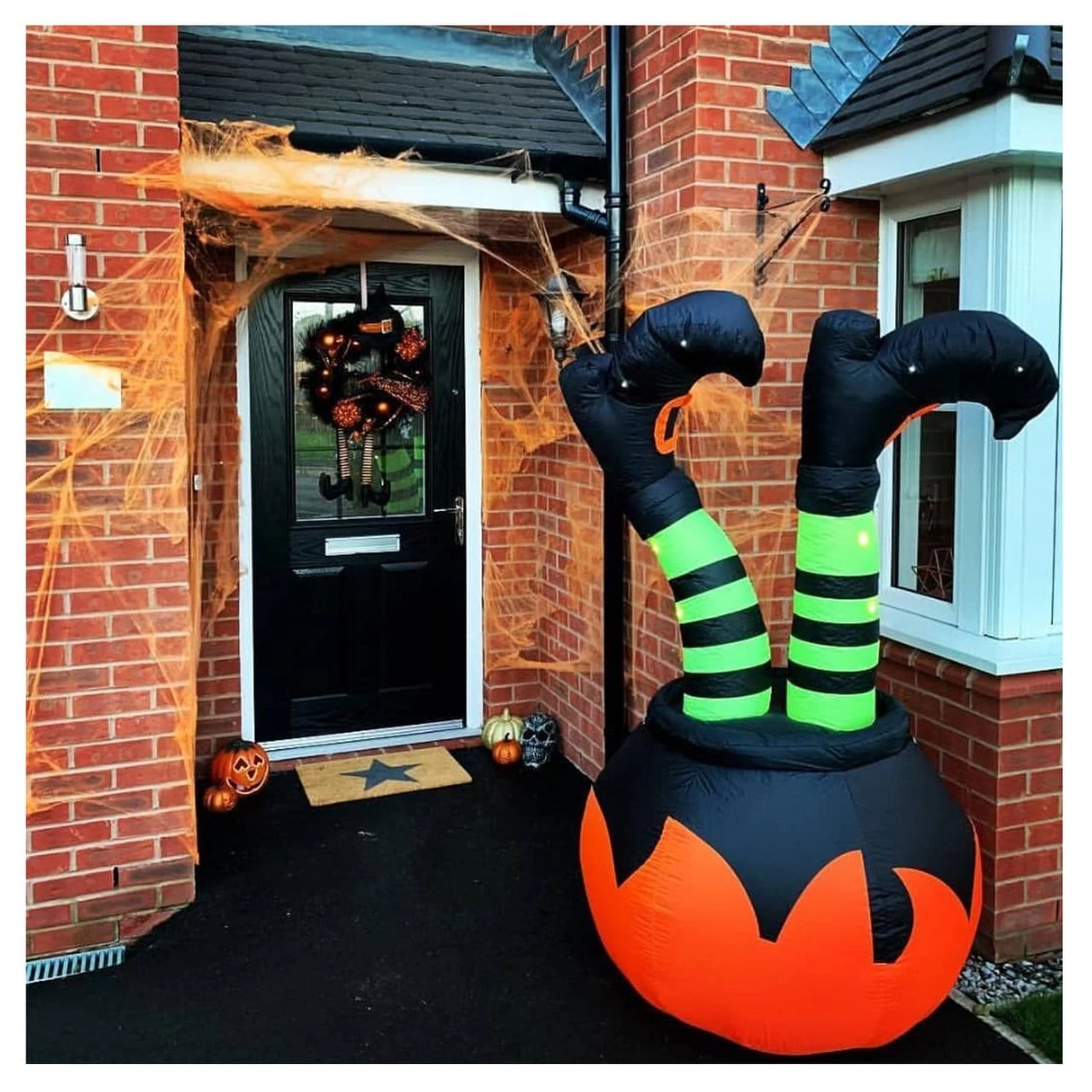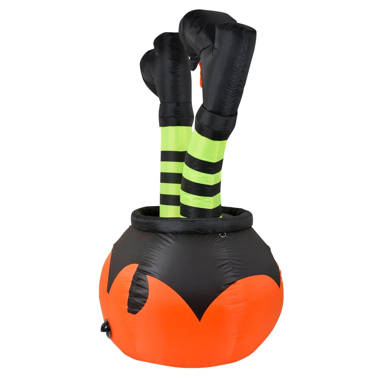 Perfect for jazzing up your garden or outdoor space during Halloween, this 6ft inflatable decoration is sure to make a statement! It features a classic orange pumpkin cauldron to the base with a pair of witches legs sticking out the top styled with yellow striped tights and buckled shoes!