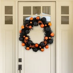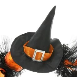 24″ Orange Witch Halloween Wreath Sparkly Hanging Decoration