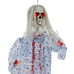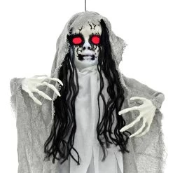 5ft Screaming Skeleton Woman Light Up Eyes Hanging Decoration