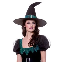 Womens Emerald Witch Costume Sequin Green Black Dress Hat Belt