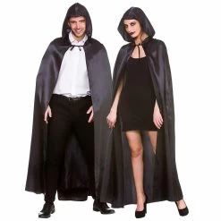 Deluxe Satin Hooded Cape Black Vampire Goth Widow Fancy Dress